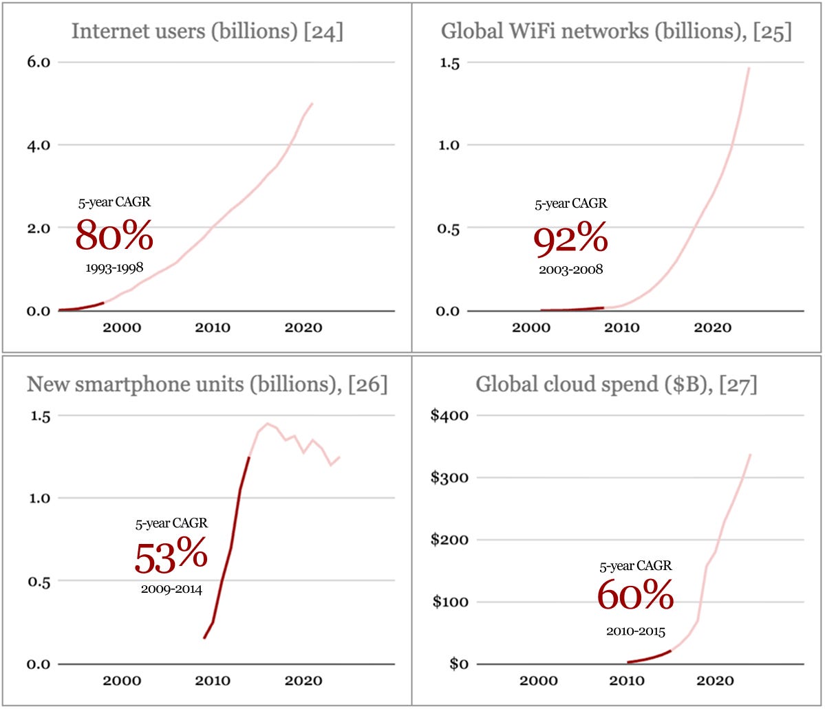 To put this in context, both scenarios would require a steeper adoption curve than any prior tech cycle, including the early internet, mobile, and cloud.